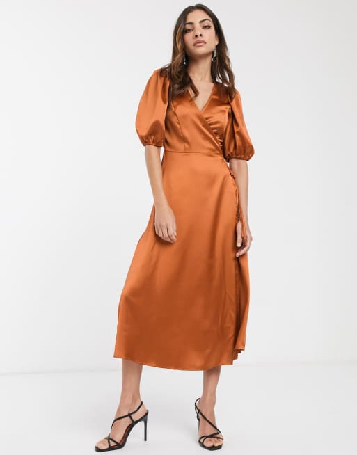 Satin midi best sale dress with sleeves